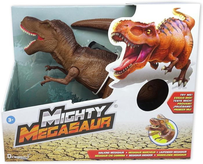 ●The Mighty Megasaur Battery Operated Walking T-Rex Features Posable Arms, A Soft Rubberneck, A Realistic Roar, Light-Up Eyes, And Real Walking Action With Stomping Sounds. ●To Make Your T-Rex Dinosaur Come To Life, You Simply Press The Button To Make Its Eyes Light Up And Watch As It Roars And Moves Its Head
