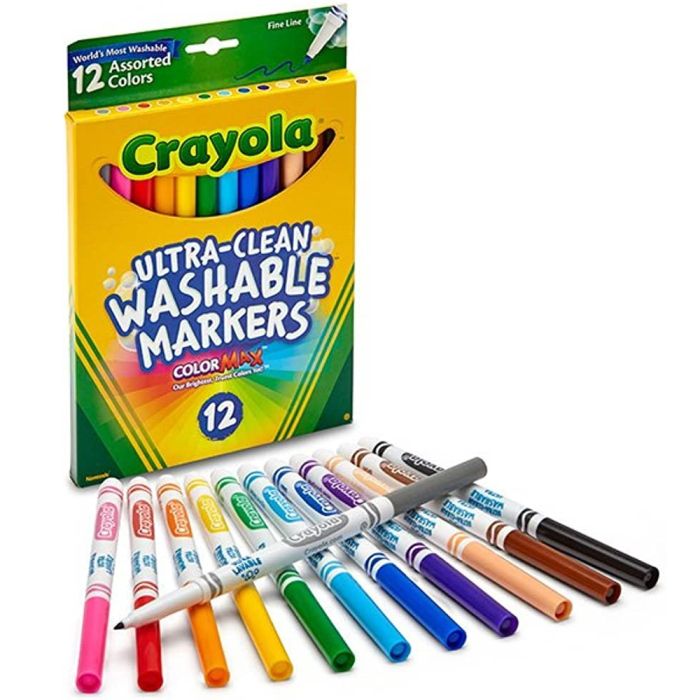 CRAYOLA - ULTRA CLEAN WASHABLE FINE LINE MARKERS, 12 COUNT