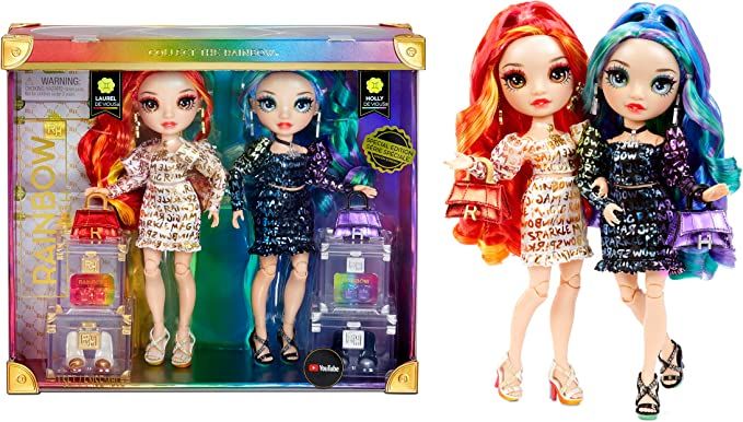 ●Each Doll Is Wearing A Gorgeous Satin Printed Graphic Dress, One In Cold Colors And One In Warm Colors, And Comes With All The Must Have Accessories To Complete Their Outfits. ●When They Are Put Side By Side, They Create The Complete Spectrum Of The Rainbow.. ●2 Fashion Dolls, 2 Complete Doll Outfits, 4 Pairs Of Trendy Shoes With, 4 Clear Fashion Trunks To Store Shoes And Doll Accessories Like 4 Pairs Of Earrings, 2 Soft Goods Purse, 2 Necklaces, 2 Hair Combs, And 2 Doll Stands.