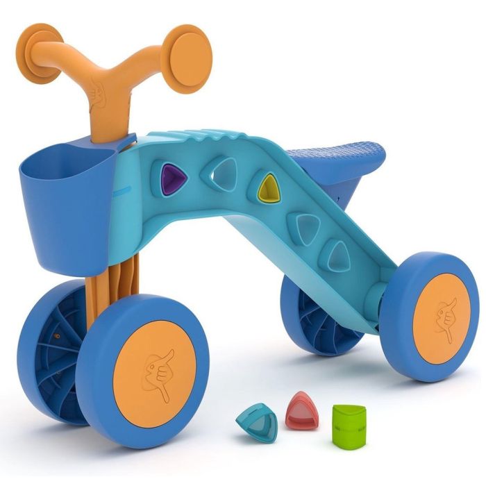 CHILLAFISH - ITSIBITSI BLOCKS 4-WHEEL BALANCE BIKE, LIGHT BLUE AND ORANGE