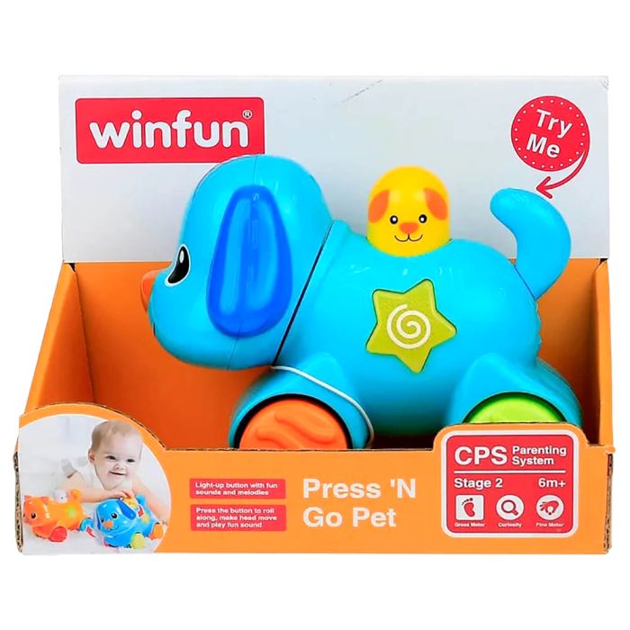 The Press N Go Pet Puppy and Kitten by WINFUN is designed to entertain and stimulate your baby’s senses. This engaging toy encourages fine motor skill development and sensory exploration through its interactive features.